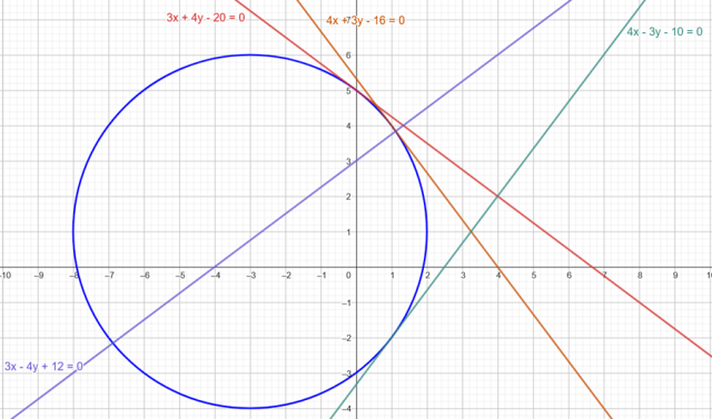 to jego promień i na tej podstawie narysuj go w jednym układzie współrzędnych z podanymi prostymi i ustal która z nich nie jest do niego styczna.