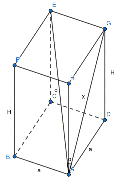 Oblicz objętość graniastosłupa prawidłowego czworokątnego, którego przekątna ma długość 6 i tworzy ze ścianą boczną kąt .