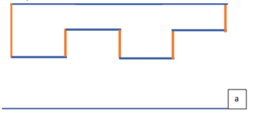 W rozwiązaniu jest przykładowy wielokąt mający pięć boków, zaznaczonych na pomarańczowo, prostopadłych do prostej a. Możliwe jest wykonanie innych wielokątów różnie spełniających założenia zadania. Boki prostopadłe do prostej a, muszą tworzyć z nią kąt prosty. Pomarańczowe boki nie przecinają prostej a, ale jeśli zostały przedłużone, to utworzyłyby z nią kąty proste, więc spełniają założenia z zadania. Do sprawdzenia, czy kąt jest prosty, można użyć ekierki, przykładając jej kąt prosty tak, żeby boki ekierki pokrywały się z odcinkami, między którymi sprawdzasz kąt.