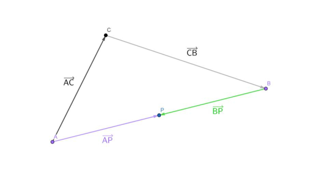 Zdanie A: Narysuj dowolny trójkąt ABC i oznacz punkt P będący środkiem boku AB. Następnie wyznacz wektory