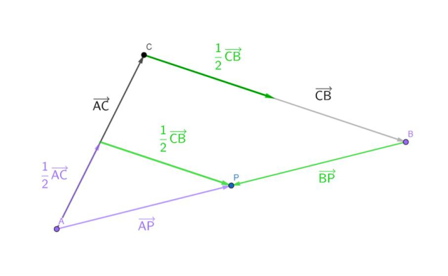 . Zauważ, że skoro punkt P jest środkiem boku AB, to suma tych wektorów będzie równa