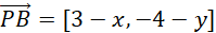 . Przy odejmowaniu wektorów pamiętaj o tym, że odejmujemy od pierwszej współrzędnej pierwszego wektora drugą współrzędną drugiego, a od drugiej współrzędnej pierwszego drugą drugiego. Kiedy już uprościsz równanie, zauważ, że wektory są sobie równe, jeżeli ich współrzędne są identyczne. Porównaj je ze sobą i utwórz układ równań. Rozwiązanie tego układu da współrzędne punktu P.