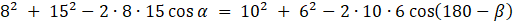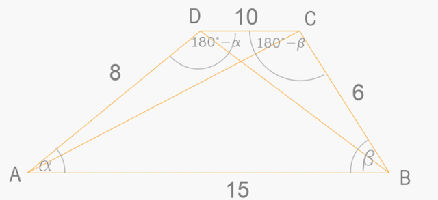 Znajdź długości przekątnych trapezu, jeśli ramiona mają długości 6 i 8 a podstawy 10 i 15.