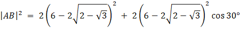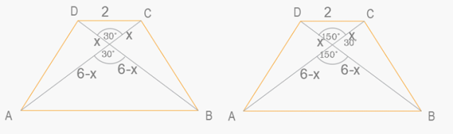 Znajdź długość podstawy trapezu równoramiennego jeśli ramiona mają długości 2 a druga podstawa 6, dodatkowo kąt pomiędzy przekątnymi wynosi 30°.