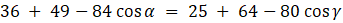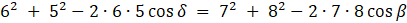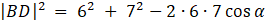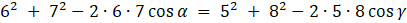 Skorzystaj z twierdzenia cosinusów: