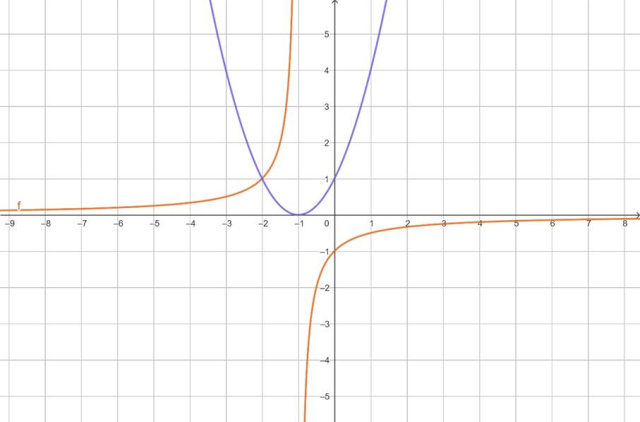 Wyznacz x dla których pomarańczowy wykres jest nad fioletowym.