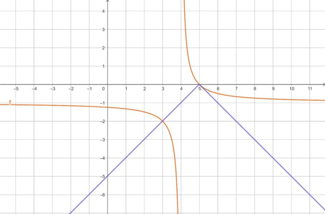 Wyznacz x dla których pomarańczowy wykres jest nad fioletowym.