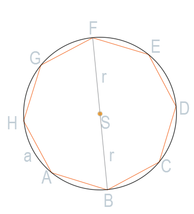 Dany jest ośmiokąt foremny, wyznacz długość jego boku, jeśli okręg opisany na tym wielokącie ma promień r.