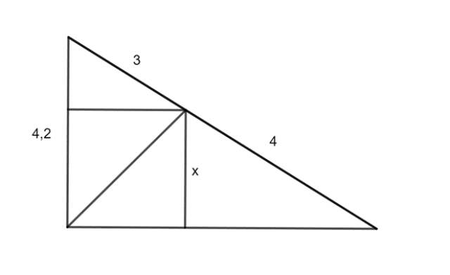 W trójkącie prostokątnym dwusieczna kąta prostego podzieliła przeciwprostokątną na odcinki 3 cm i 4 cm. W tym zadaniu musisz obliczyć długość odcinka tej dwusiecznej, zawartego w trójkącie.