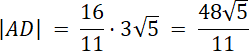 W trójkącie równoramiennym ABC podstawa AB ma długość 12. Dwusieczna kąta BAC przecina bok BC w punkcie D, którego odległość od podstawy AB jest równa