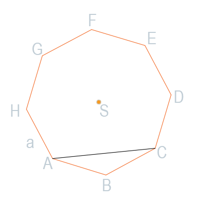 Wyznacz długość boku ośmiokąta foremnego ABCDEFGH, jeśli przekątna AC jest długości 1.