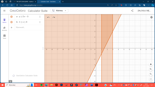 Zapisz, dla jakiego zbioru punktów podana nierówność jest prawdziwa.