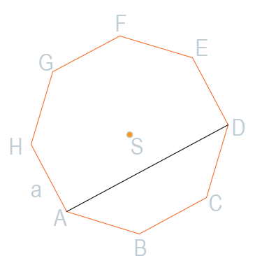 Wyznacz długość boku ośmiokąta foremnego ABCDEFGH, jeśli przekątna AD jest długości 1.