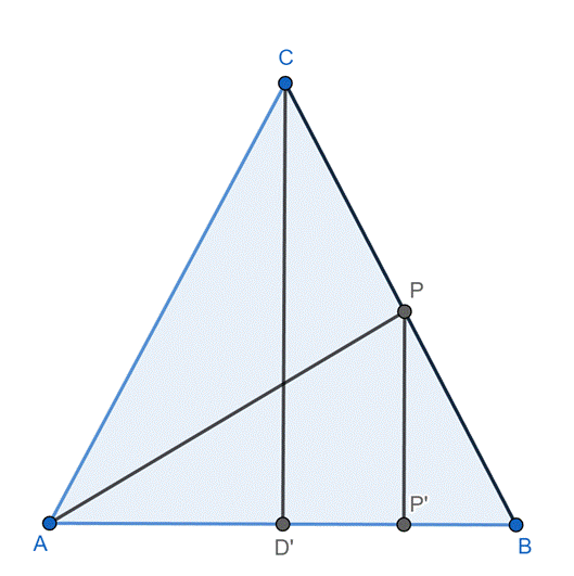 Podstawa AB trójkąta równoramiennego ABC ma długość 18 cm, a wysokość BD jest równa 14,4 cm. Dwusieczna kąta BAC przecina ramię BC w punkcie P. W tym zadaniu musisz obliczyć długość odcinka AP dwusiecznej kąta BAC.