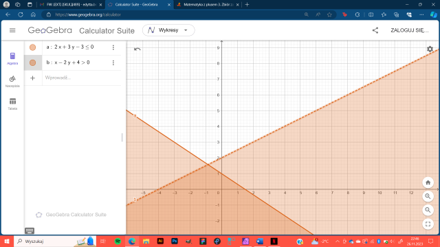 Zapisz, dla jakiego zbioru punktów podana nierówność jest prawdziwa.