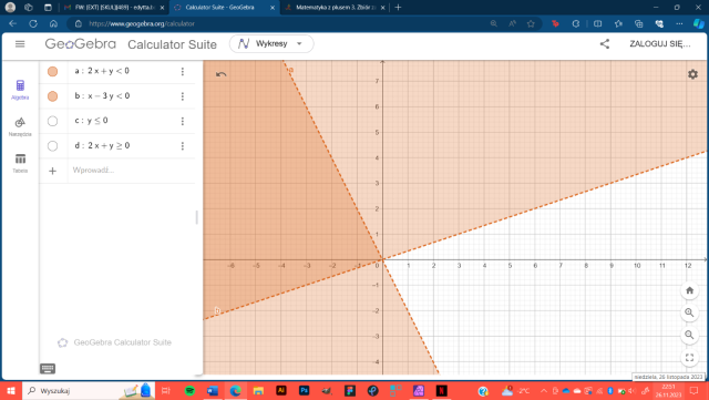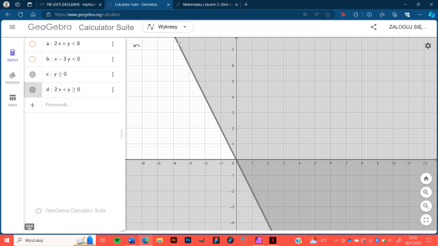 Zapisz, dla jakiego zbioru punktów podana nierówność jest prawdziwa.