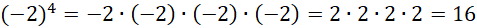 Zamień potęgę na iloczyn. Aby określić znak wyniku, należy policzyć ilość liczb ujemnych w mnożeniu – jeżeli jest nieparzysta, wynik będzie ujemny, a jeżeli parzysta – dodatni.