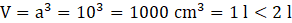 Na początku zapisz wzór na objętość sześcianu. Za niewiadomą a wstaw długość boku. Oblicz objętość. Następnie zgodnie z informacją podaną na początku zamień cm3 na l i sprawdź, czy wartość jest mniejsza od 2 l.