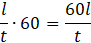 Tempo czytania policz jako stosunek liczby przeczytanych słów (l) i czasu ich czytania (t), a następnie pomnóż go przez 60.