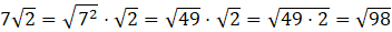 W tym zadaniu musisz włączyć liczbę 7 pod znak pierwiastka. Pierwiastki są tego samego stopnia, więc większa będzie ta liczba, która ma większą liczbę w podstawie pierwiastka.
