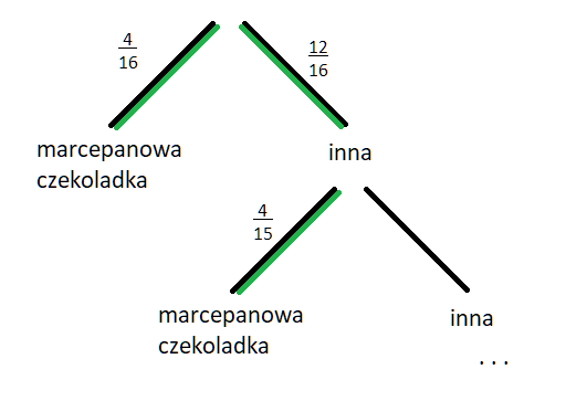 A – wylosowano czekoladkę marcepanową w pierwszym lub drugim losowaniu