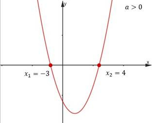 Nierówność kwadratową rozwiązujemy wyznaczając miejsca zerowe trójmianu. Następnie rysujemy pomocniczy schemat funkcji, z którego odczytujemy rozwiązania.