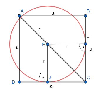 Dany jest kwadrat ABCD o boku o długości a. Oblicz promień okręgu, który przechodzi przez punkt A i jest styczny do prostych BC i CD.