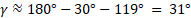 , więc istnieją dokładnie dwa trójkąty spełniające warunki zadania. Dla każdej z nich oblicz miarę trzeciego kąta i długość boku c z twierdzenia sinusów.