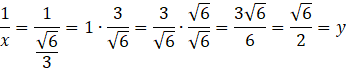 W tym zadaniu musisz podzielić 1 przez jedną z liczb i przekształcić wynik tak, aby był on drugą liczbą. Podczas liczenie będziesz musiał usunąć niewymierność (wymnóż licznik i ułamek przez niewymierność w mianowniku). Ostateczna równość musi wyglądać tak:
