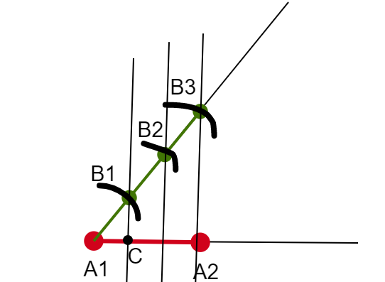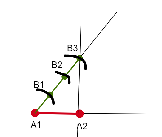 Teraz stwórz proste równolegle do tej prostej, przechodzące przez końce wcześniejszych odcinków o długości 1.
