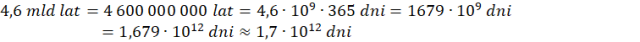 Pomnóż 4,6 mld lat przez ilość dni w roku, a otrzymany wynik zapisz w postaci notacji wykładniczej: