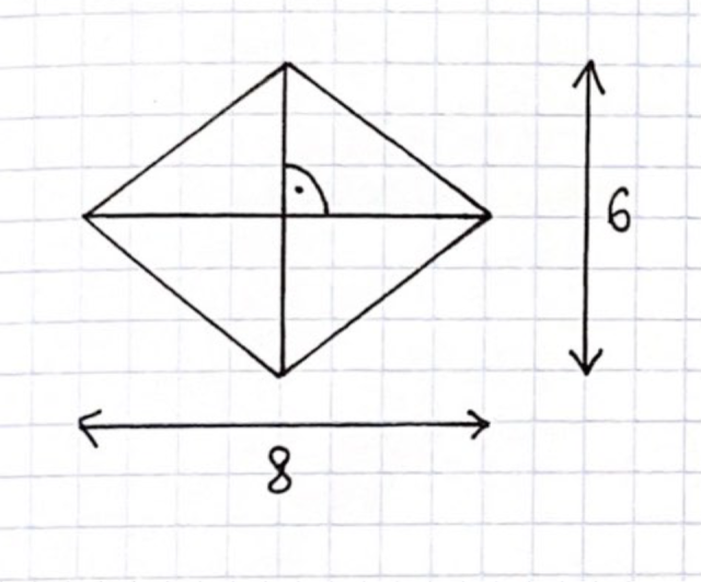 W tym zadaniu przyjmij, że na papierze w kratkę długość boku kratki jest równa 1, a następnie narysuj na takim papierze romb, którego przekątne mają długości 6 i 8.