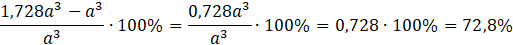 Krawędź sześcianu wydłużono o 20%. Wykaż, że objętość sześcianu zwiększyła się o 72,8%.
