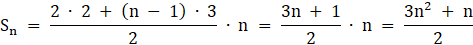 W tym zadaniu musisz znaleźć wzór na sumę n początkowych liczb naturalnych spełniających opisane warunki, korzystając ze wzoru na sumę początkowych wyrazów ciągu arytmetycznego.