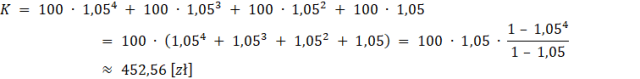 W zadaniu powinieneś skorzystać ze wzoru na sumę n początkowych wyrazów ciągu geometrycznego dla ciągu o pierwszym wyrazie