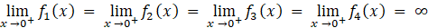 Aby pokazać, że spełniona jest podana w treści równość, powinieneś obliczyć granice prawostronne w zerze dla każdej z funkcji i zauważyć, że każda z nich jest równa nieskończoności.