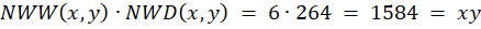 W pierwszym kroku rozbijasz podane x i y na czynniki pierwsze i obliczasz ich NWD oraz NWW. Następnie obliczasz iloczyny