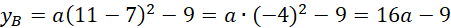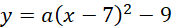 Najpierw szukamy wzoru funkcji dla paraboli o wierzchołku: