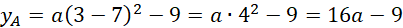 Najpierw szukamy wzoru funkcji dla paraboli o wierzchołku