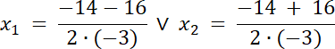 W tym zadaniu musisz wymnożyć wyrażenia w nawiasach kwadratowych, następnie przenieść wszystko na jedną stronę, by rozwiązać równanie, wykorzystując wyznaczenie wyróżnika funkcji kwadratowej, a następnie oblicz wartości liczby x, będące rozwiązaniem równania.