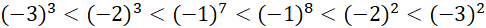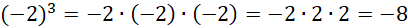 Zamień potęgę na iloczyn. Aby określić znak wyniku, należy policzyć ilość liczb ujemnych w mnożeniu – jeżeli jest nieparzysta, wynik będzie ujemny, a jeżeli parzysta – dodatni. Każda potęga (-1) wynosi (-1) lub 1.