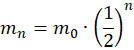 Za każdym razem po określonym czasie pierwiastek zmniejszy się o połowę, więc iloczyn jego masy oraz tego czasu podniesionego do ilości tych okresów połowicznego rozpadu będzie masą pierwiastka po upływie n okresów połowicznych rozpadów. Ilość okresów to