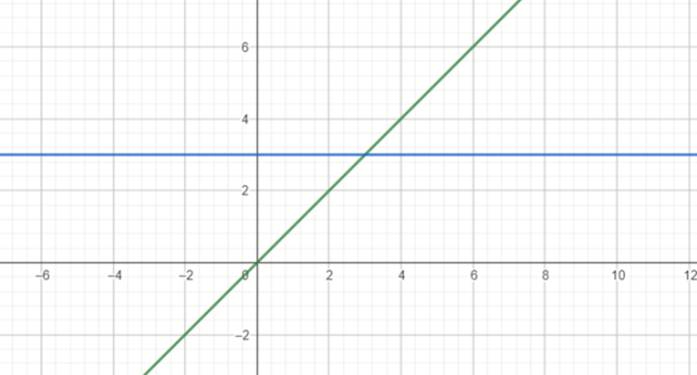 Narysuj osobno wykresy f(x) = x i g(x) = 3. Odczytaj z rysunku dla jakich argumentów wartości funkcji f(x) = x są większe od funkcji g(x) = 3.