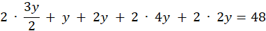 Pole większych prostokątów to 4y, mniejszych zaś to 2y. Ich suma ma dać 48, więc: