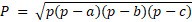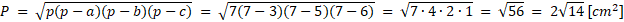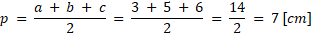 gdzie a, b ,c – długości boków trójkąta, p – połowa obwodu trójkąta.