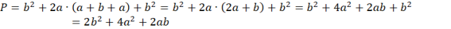 Zauważ, że podaną figurę można podzielić na dwa kwadraty o boku b i jeden prostokąt. Zatem jej pole to suma pól figur, z których się składa: