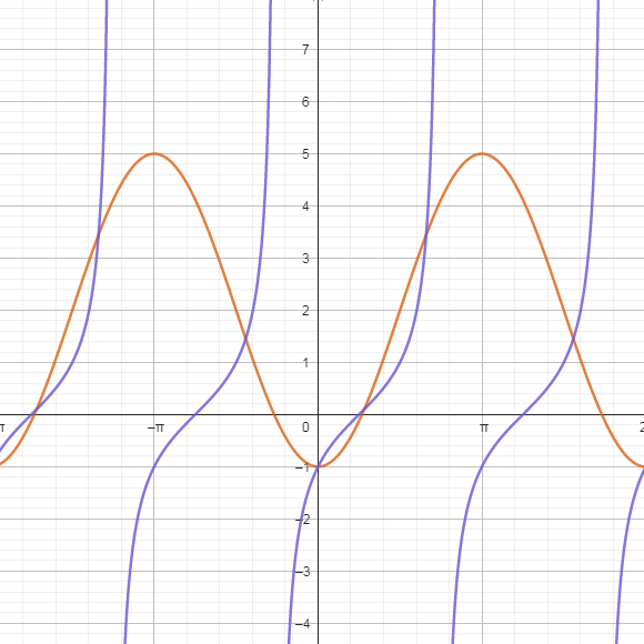 W tym zadaniu musisz rozwiązać graficznie podane równanie, a następnie podać ilość punktów wspólnych tych funkcji na wskazanym przedziale.
