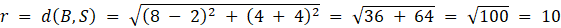 Współrzędne środka okręgu to S(2,-4). Długość promienia okręgu to: