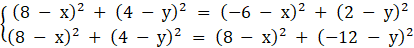 Niech S(x,y) i r będą odpowiednio środkiem i promieniem okręgu przechodzącego przez punkty B, D i A. Zachodzą zatem równości: