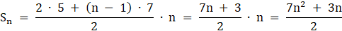 W tym zadaniu musisz znaleźć wzór na sumę n początkowych liczb naturalnych spełniających opisane warunki, korzystając ze wzoru na sumę początkowych wyrazów ciągu arytmetycznego.
